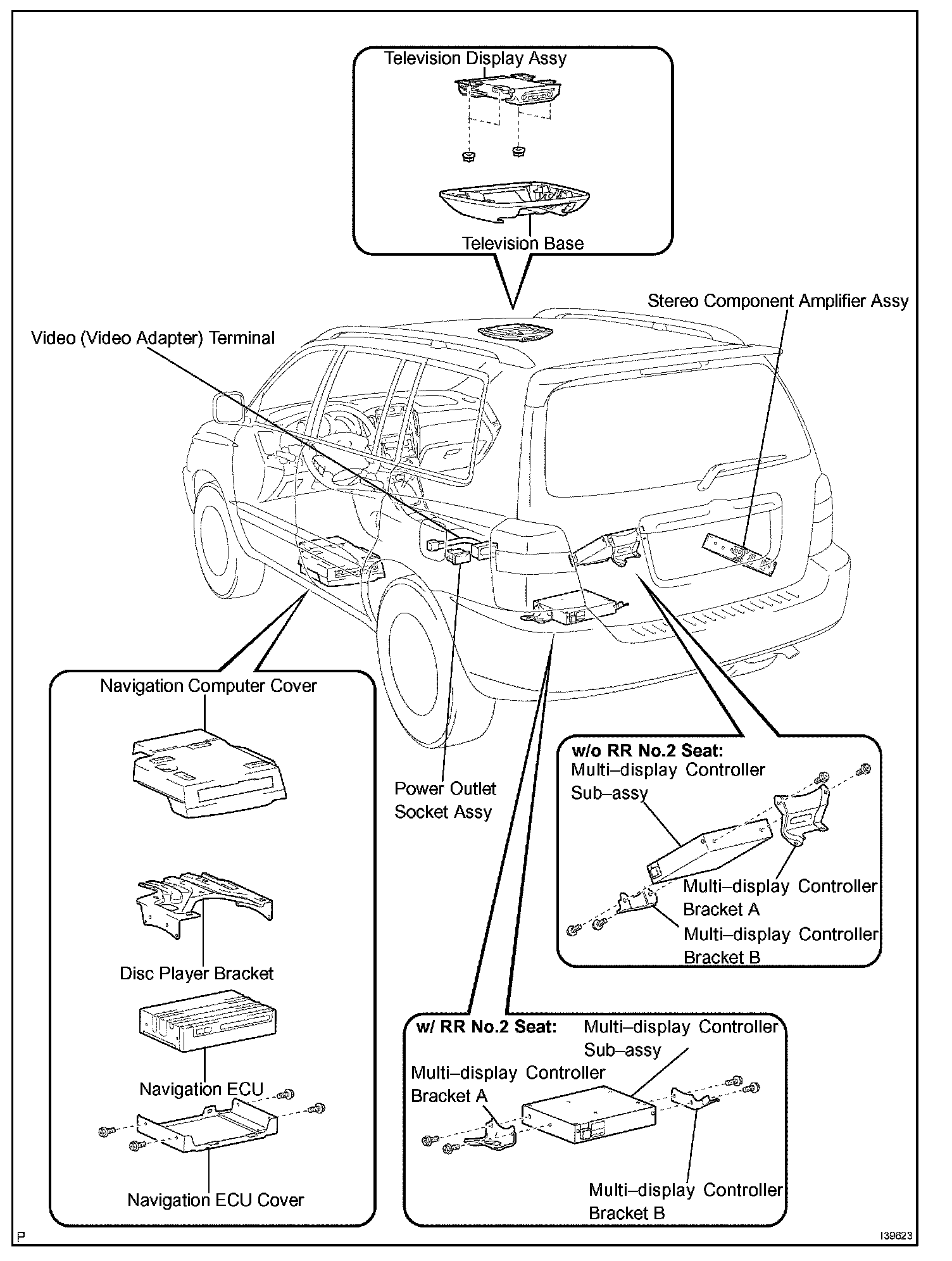 b. Remove the 2 bolts and the navigation ECU w/ bracket.