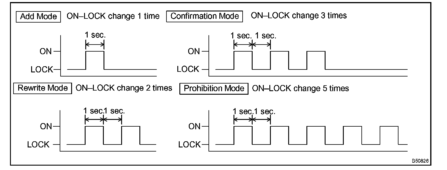 - If the number of ON-LOCK operations of the ignition switch is 4 or more than 5, the registration will end without any signs.