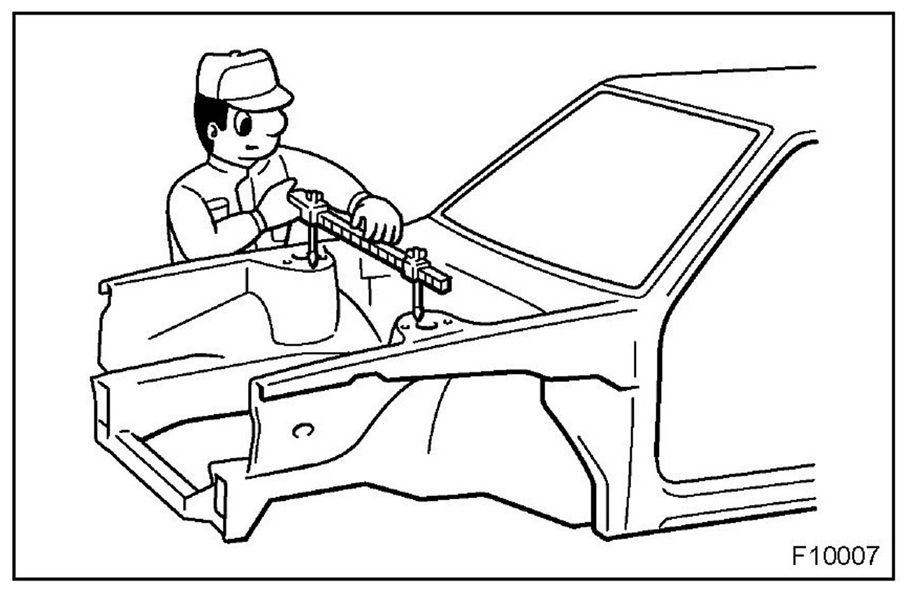 1. Before removal or cutting operations, take measurements in accordance with the dimension diagram. Always use a puller to straighten a damaged body or frame.