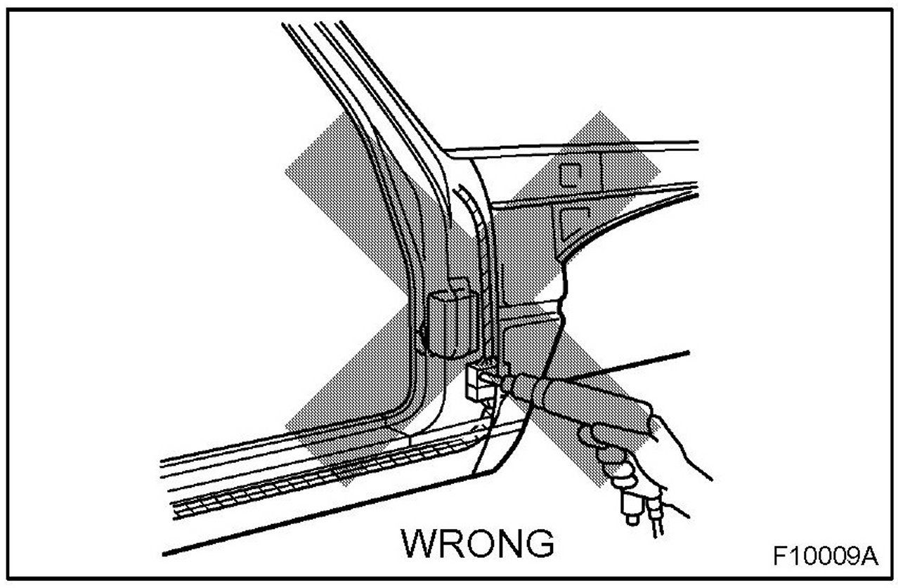 1. For water-proofing and anti-corrosion measures, always apply the body sealer to the body panel seams and hems of the doors, hoods, etc.