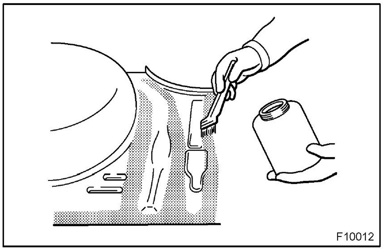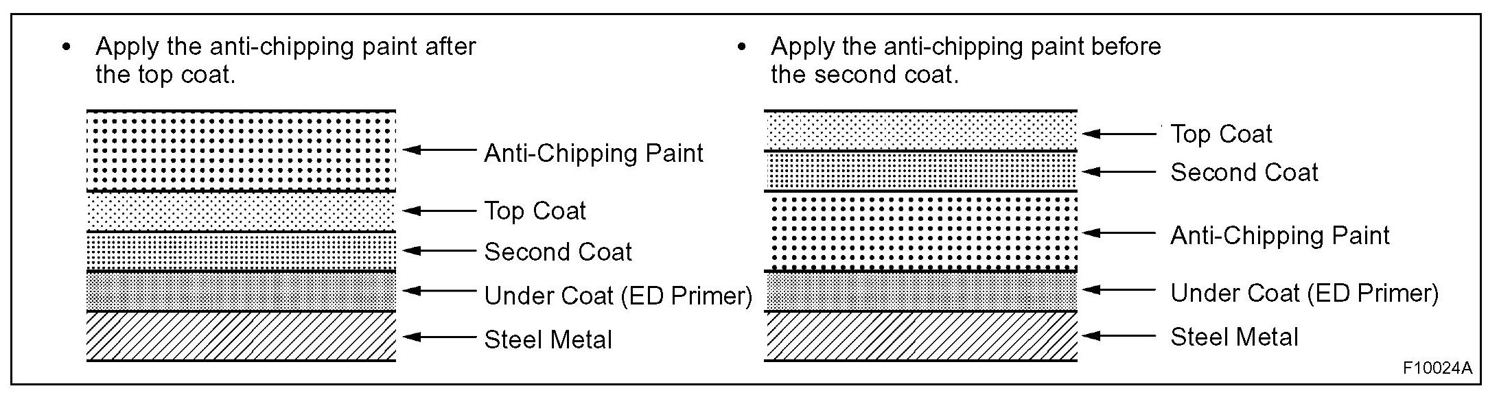 1. To prevent corrosion and protect the body from damage by flying stones, etc., apply anti-chipping paint to the rocker panel, wheel arch areas, balance panel, etc.