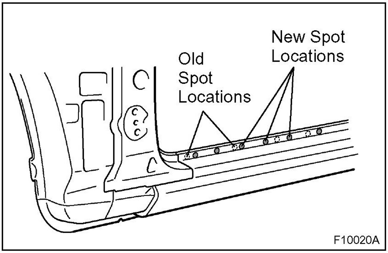 2. Plug welding should be done with a MIG (Metal Inert Gas) welder. Do not gas weld or braze panels at areas other than specified.