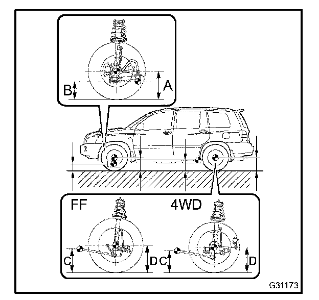 HINT: Bounce the vehicle at the corners up and down to stabilize the suspension and inspect the vehicle height.
