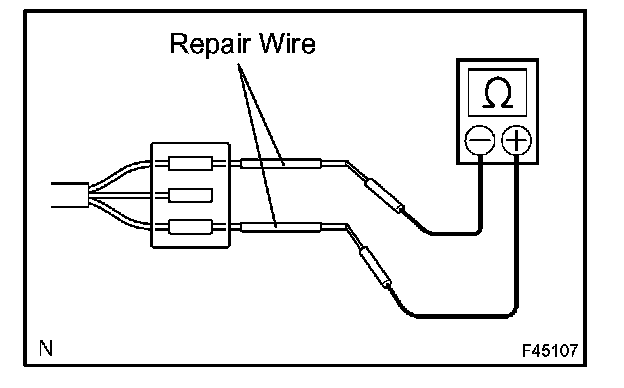 b. If it is impossible to check resistance from the back of the connector, use a repair wire to check it.