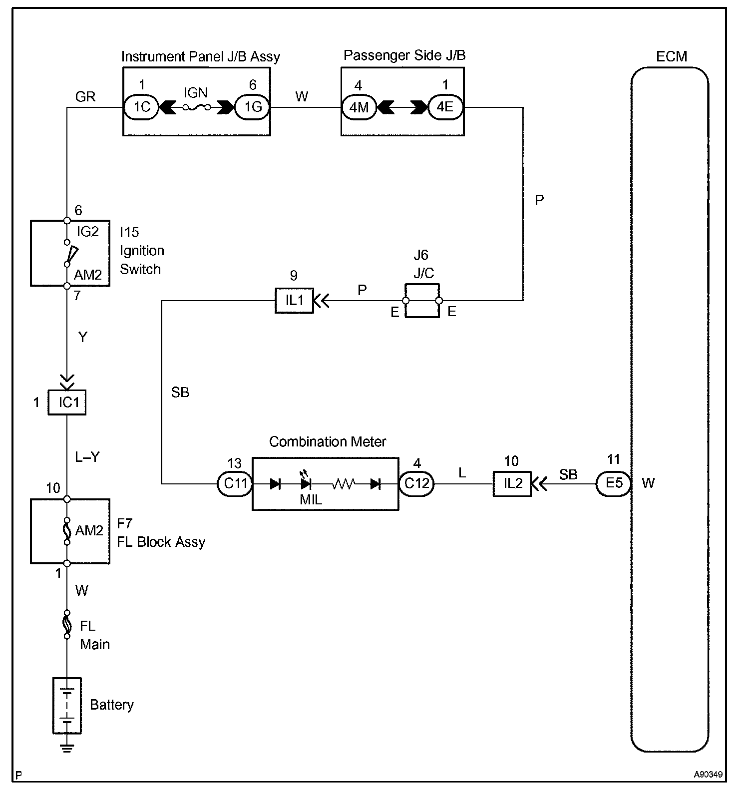 The Malfunction Indicator Lamp (MIL) is used to indicate the ECM's detection of a vehicle malfunction. The instrument panel IG2 fuse provides circuit power and the ECM provides the circuit ground that illuminates the MIL.