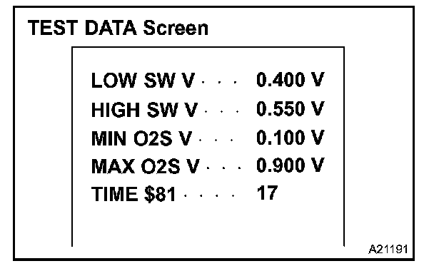 If the TEST DATA value appearing on the scan tool is out of the standard value, the O2S is malfunctioning. If it is within the standard value, the O2S is functioning normally. However, if the value is on the borderline of the standard value, the O2S may malfunction very soon.