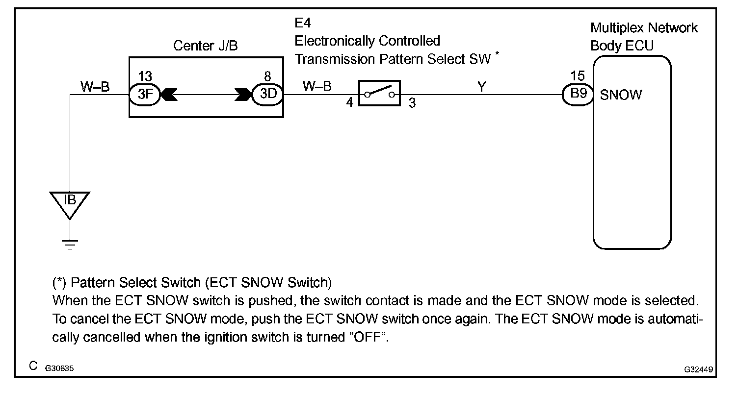 ECT SNOW is the system that operates the throttle motor to control engine output to reduce skidding of the driving wheels, guarantee takeoff acceleration, driving straightness and turning stability.