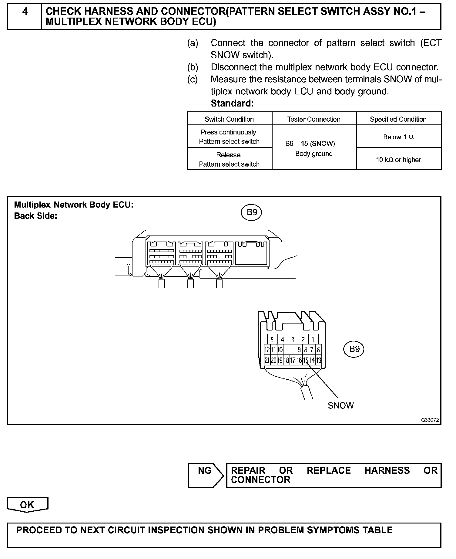 Multiplex network body ECU receives pattern select switch information, and sends it through the multiplex communication system to the ECM.