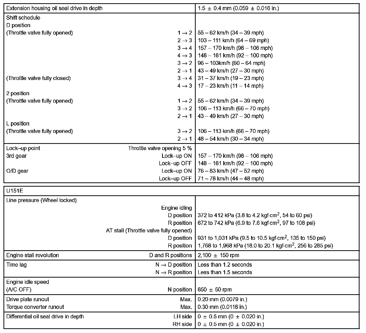Automatic Transmission/Transaxle - Service Data Part 2: