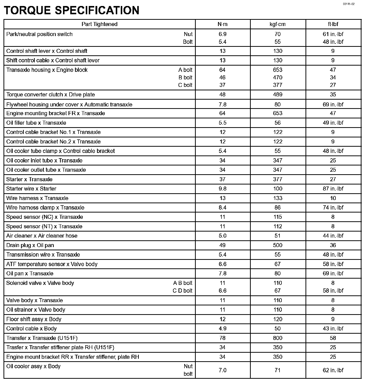 Automatic Transmission/Transaxle - Torque Specification: