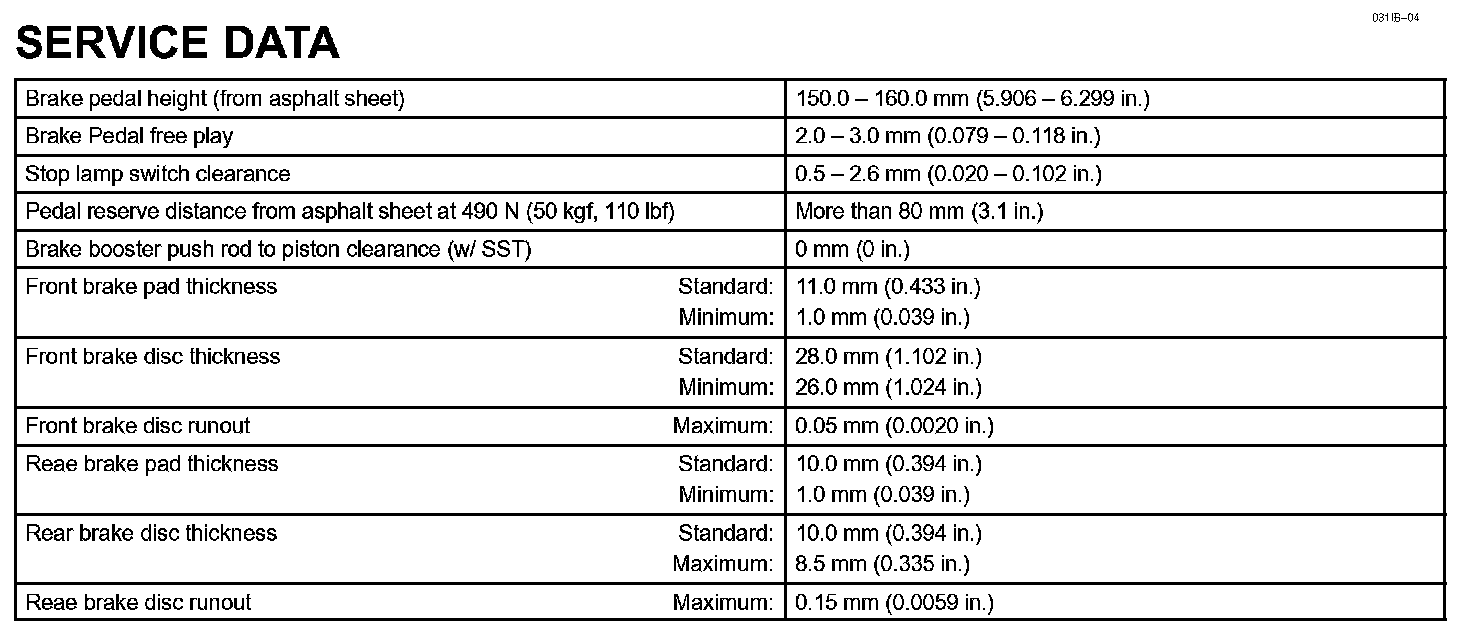 Brake - Service Data:
