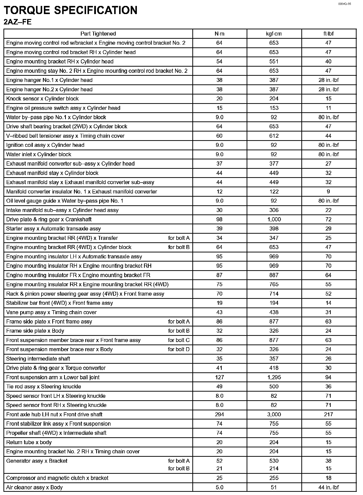 Engine Mechanical - Torque Specification Part 2: