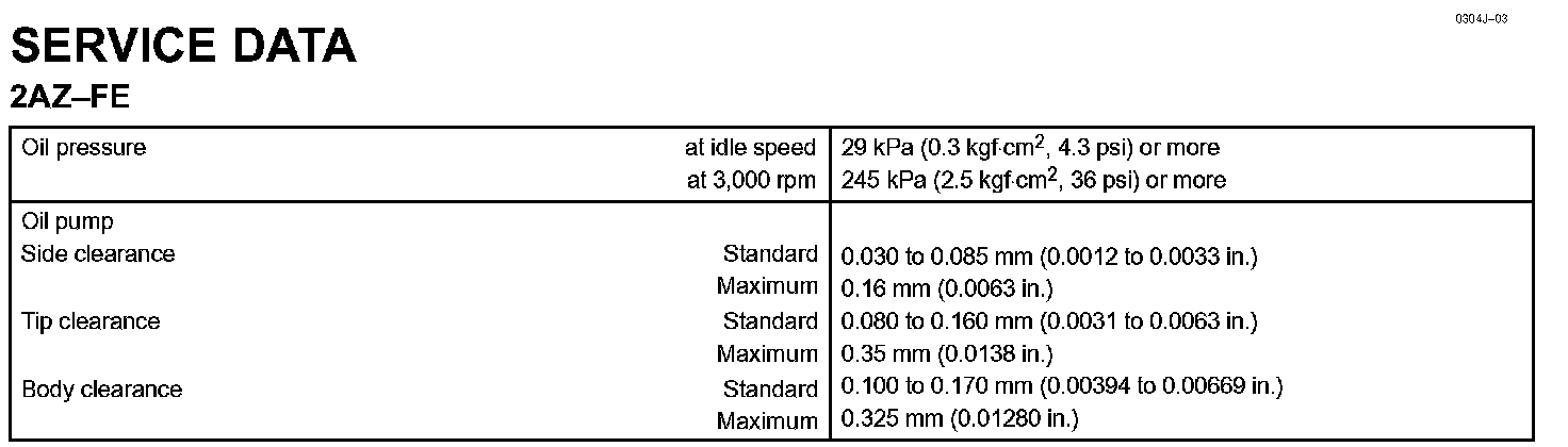 Lubrication - Service Data: