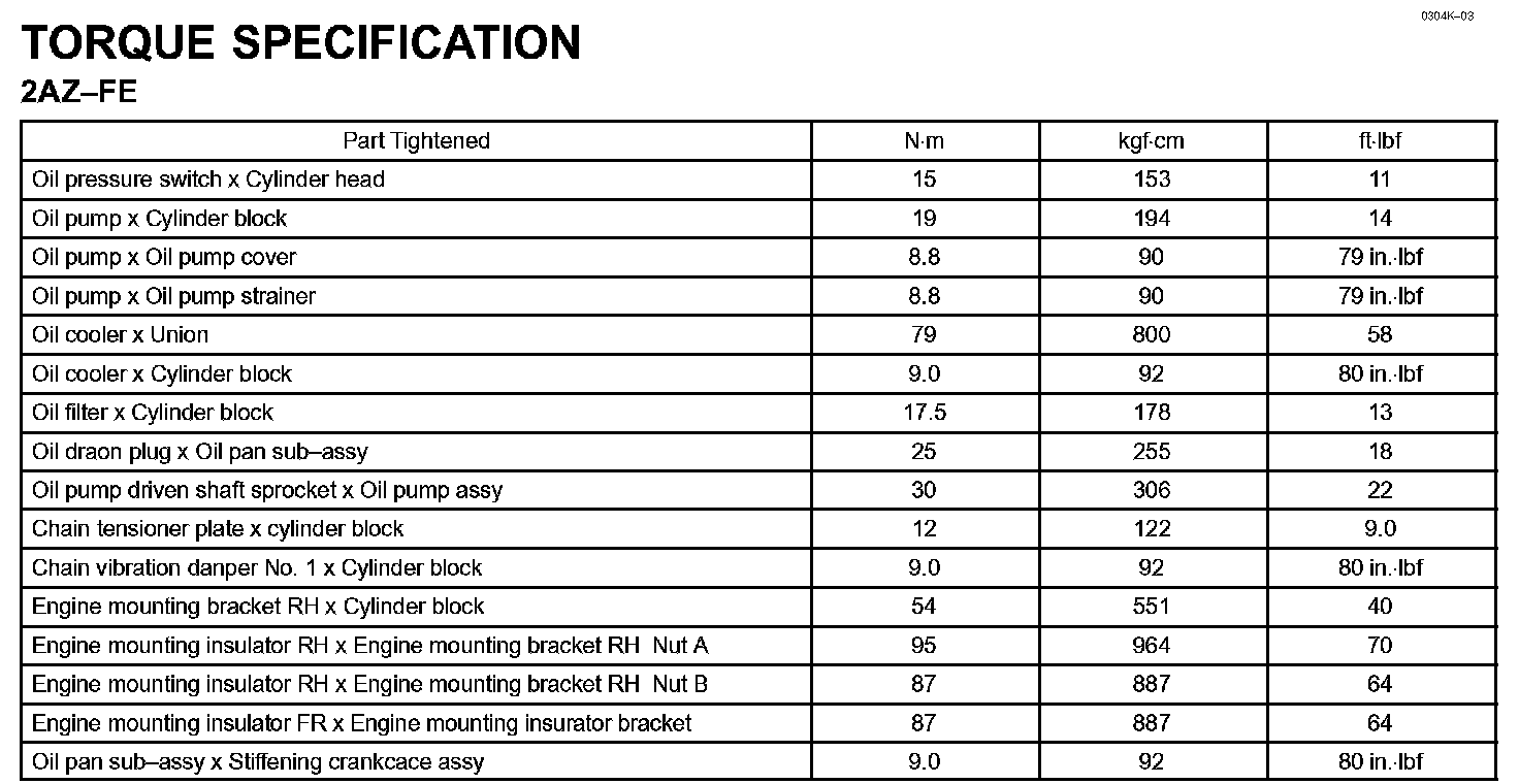 Lubrication - Torque Specification: