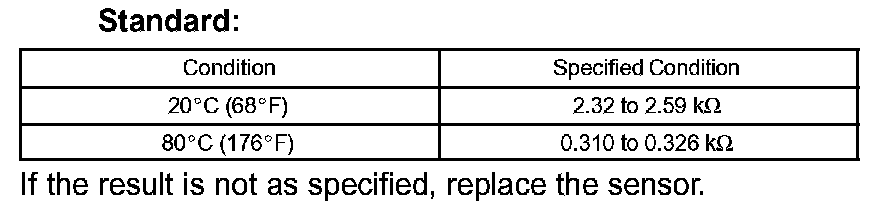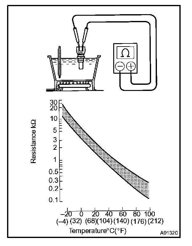 NOTE: If checking the ECT sensor in the water, keep the terminals dry. After the check, wipe the sensor dry.