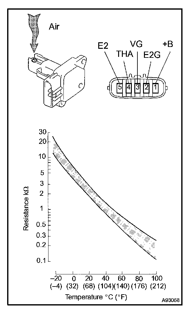 b. Measure the resistance between terminals 4 (THA) and 5 (E2).