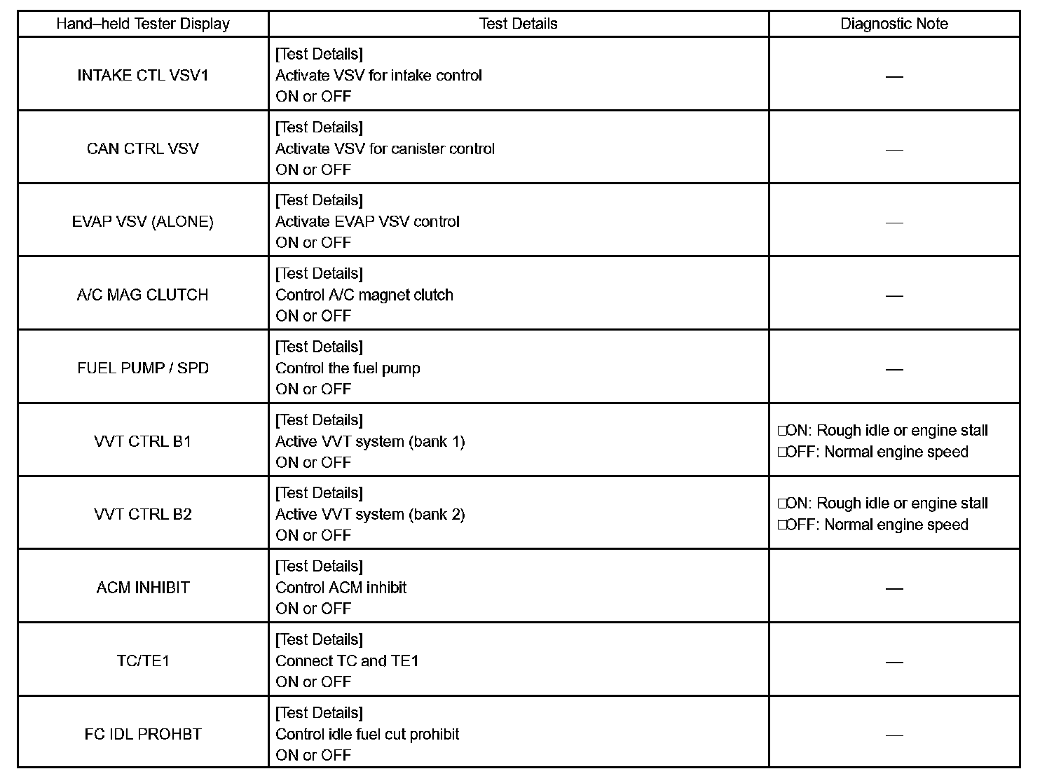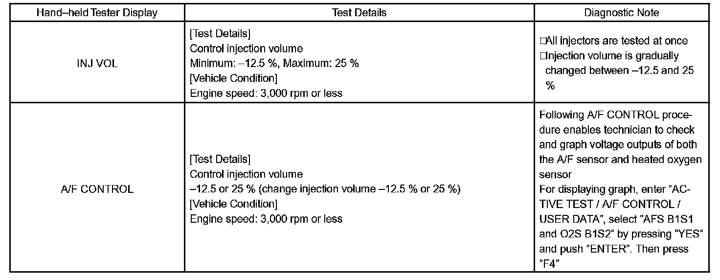 ACTIVE TESTHINT: Performing the hand-held tester ACTIVE TEST allows relay, VSV, actuator and other items to be operated without removing any parts. Performing the ACTIVE TEST early in troubleshooting is one way to shorten labor time. The DATA LIST can be displayed during the ACTIVE TEST.