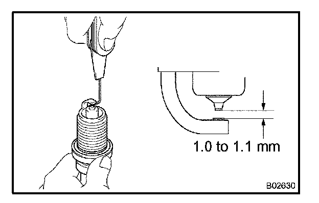 Correct electrode gap for new spark plug: 1.0 to 1.1 mm (0.039 to 0.043 in.)