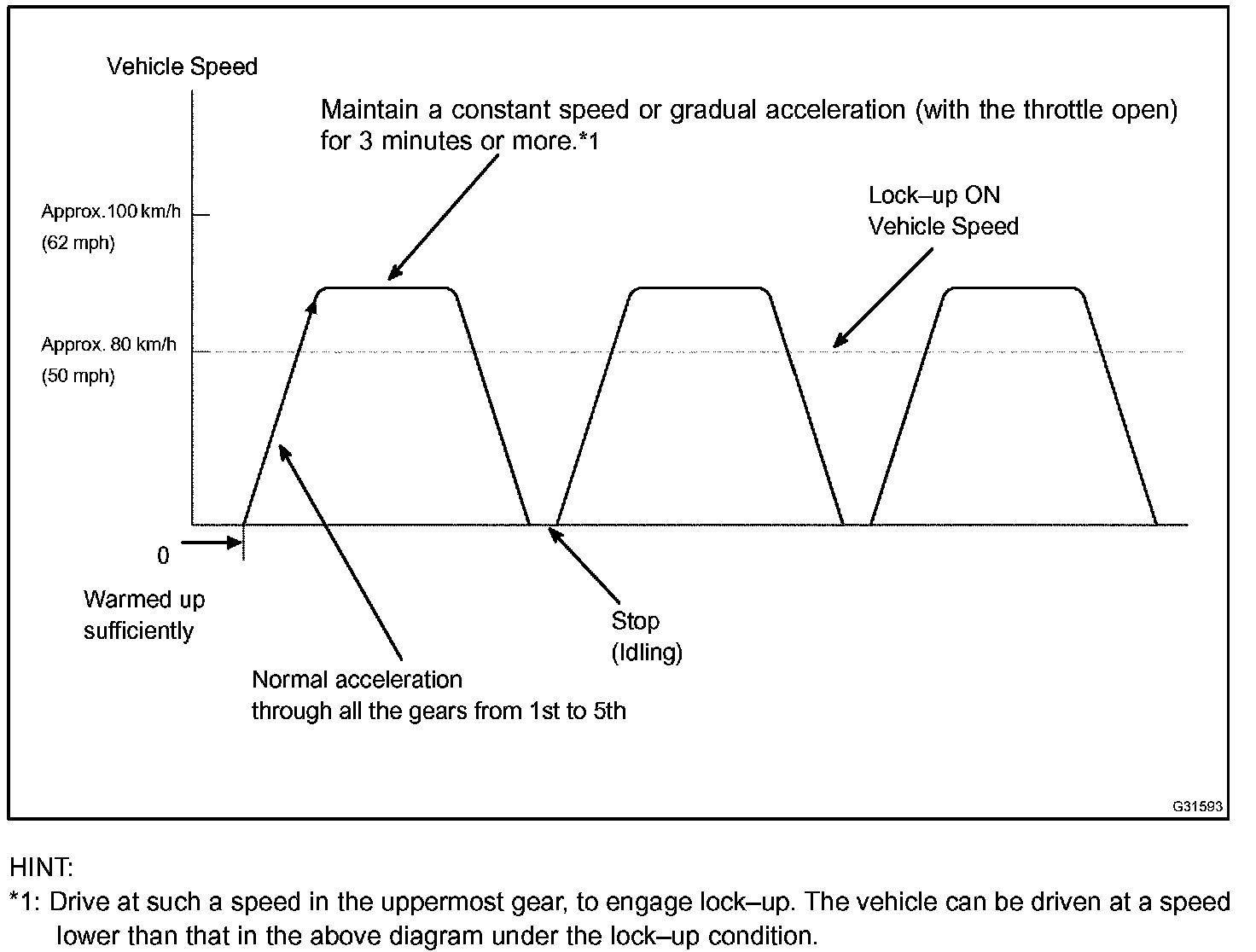 (The DTCs may not be detected due the actual driving conditions. And some codes may not be detected through this drive pattern).