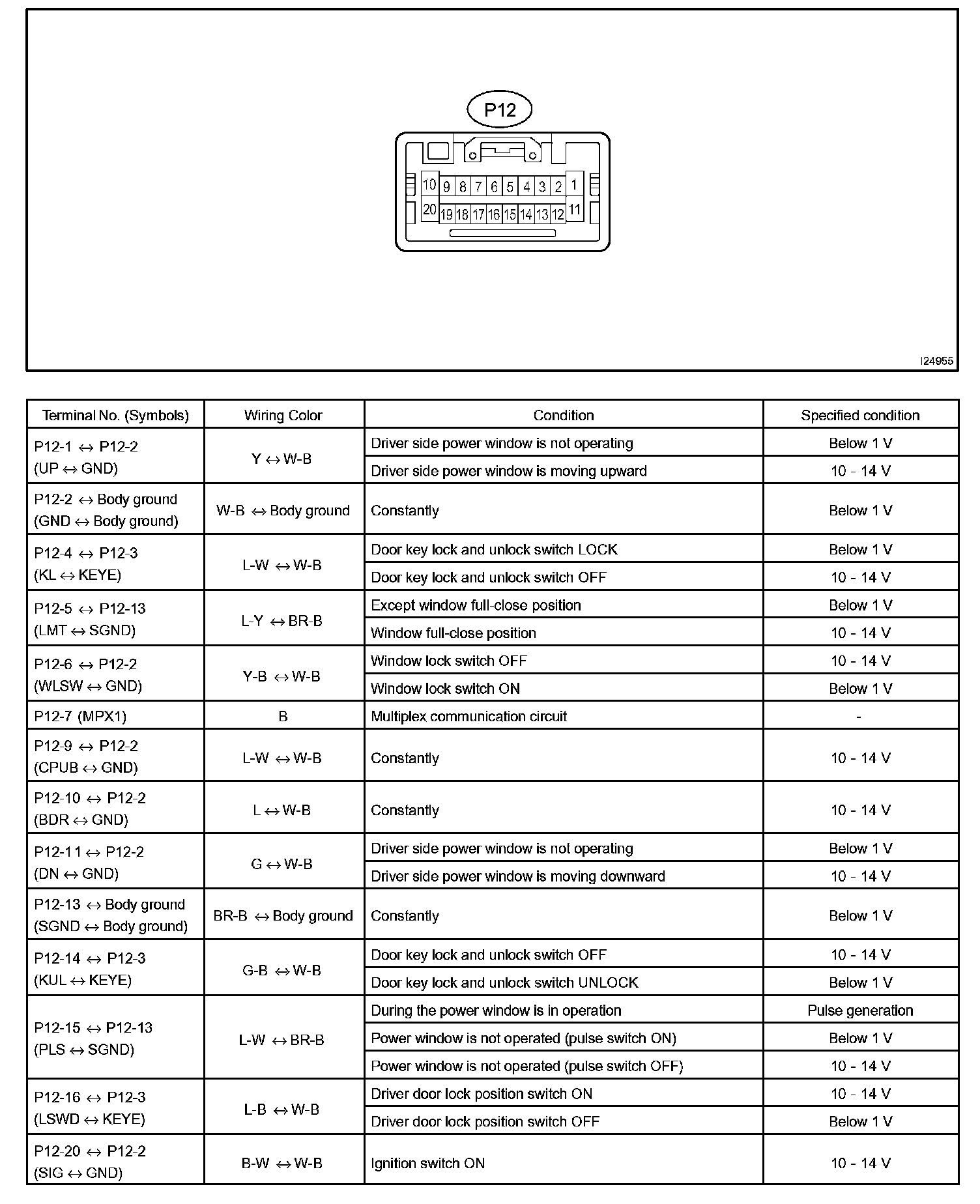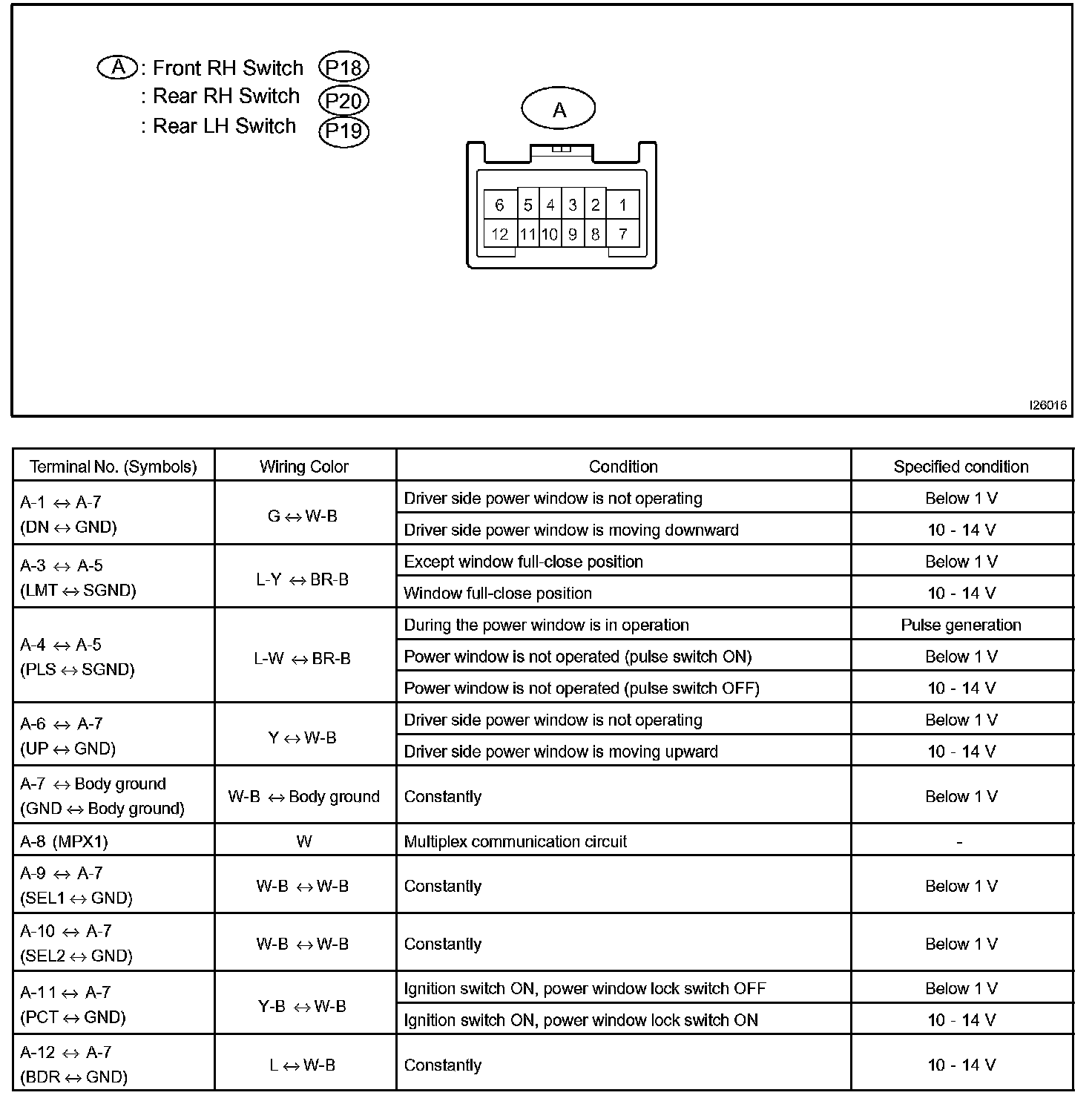 Terminals Of Control Module/Pinouts - Power Window Master Switch: