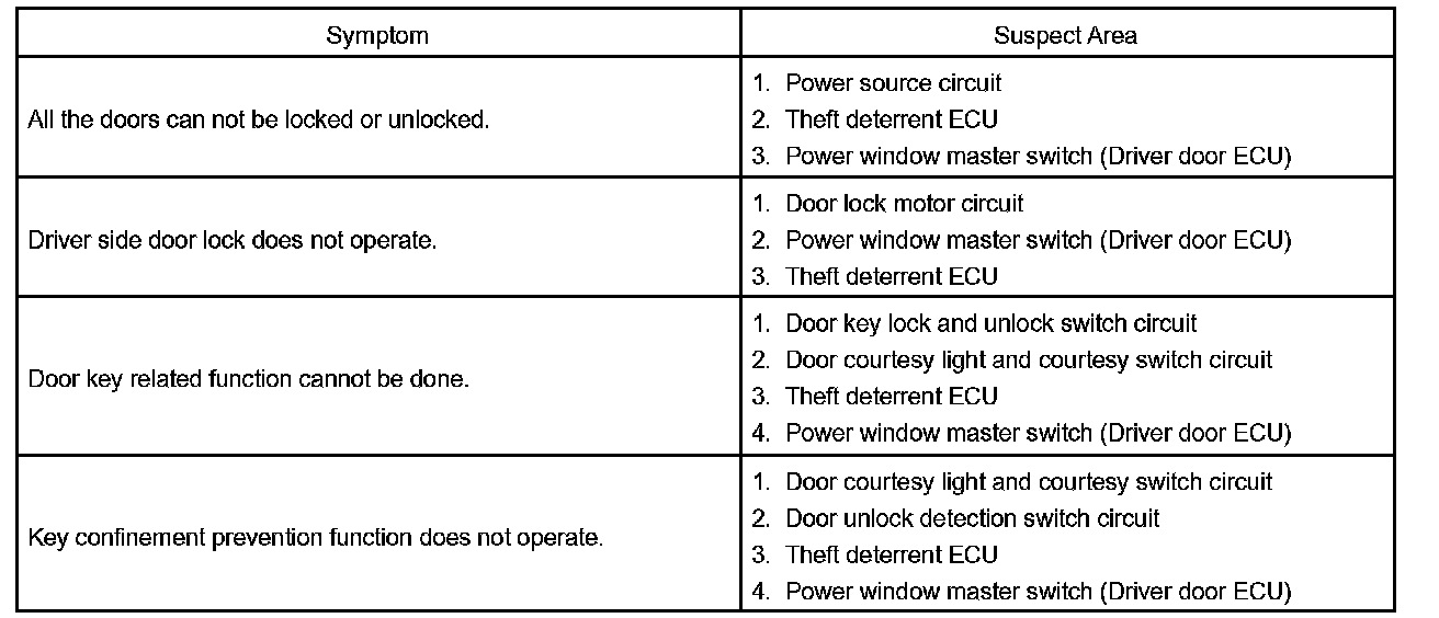 Problem Symptoms Table - Power Door Lock Control System: