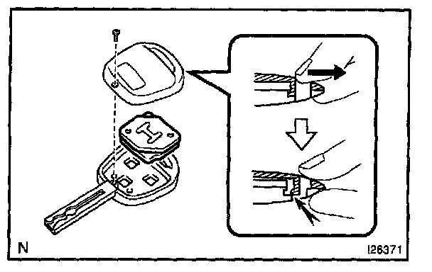 HINT: Push the cover with a finger as shown in the illustration, so that there becomes clearance, then pry out the cover from that clearance.
