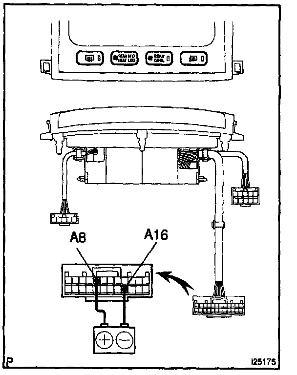 a. Connect the positive (+) lead from the battery to terminal A8 and negative (-) lead to terminal A16.