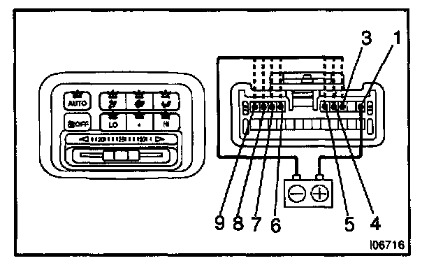 b. Connect the positive (+) lead from the battery to terminal 2, then check that indicators dim.