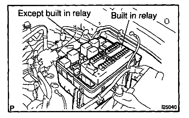 HINT: The mirror heater relay is built in engine room junction block. Also the relay is constructed with a relay block that is in the junction block as a unit. To disconnect the wire harness connecting with relay block is impossible. If the relay has a malfunction, replace it with junction block assembly wire harness together.