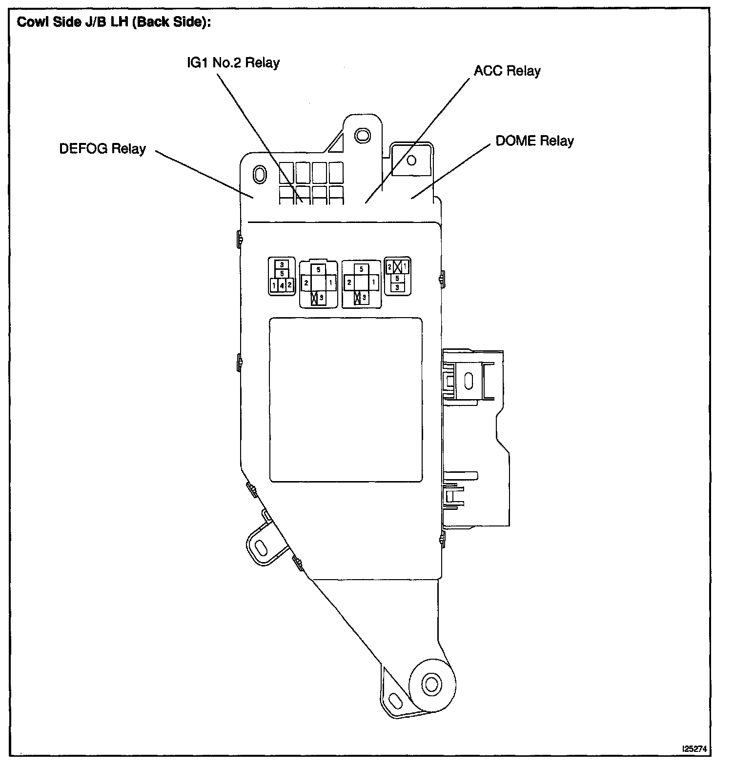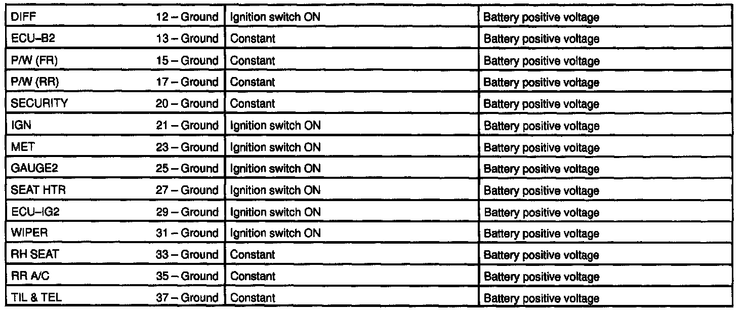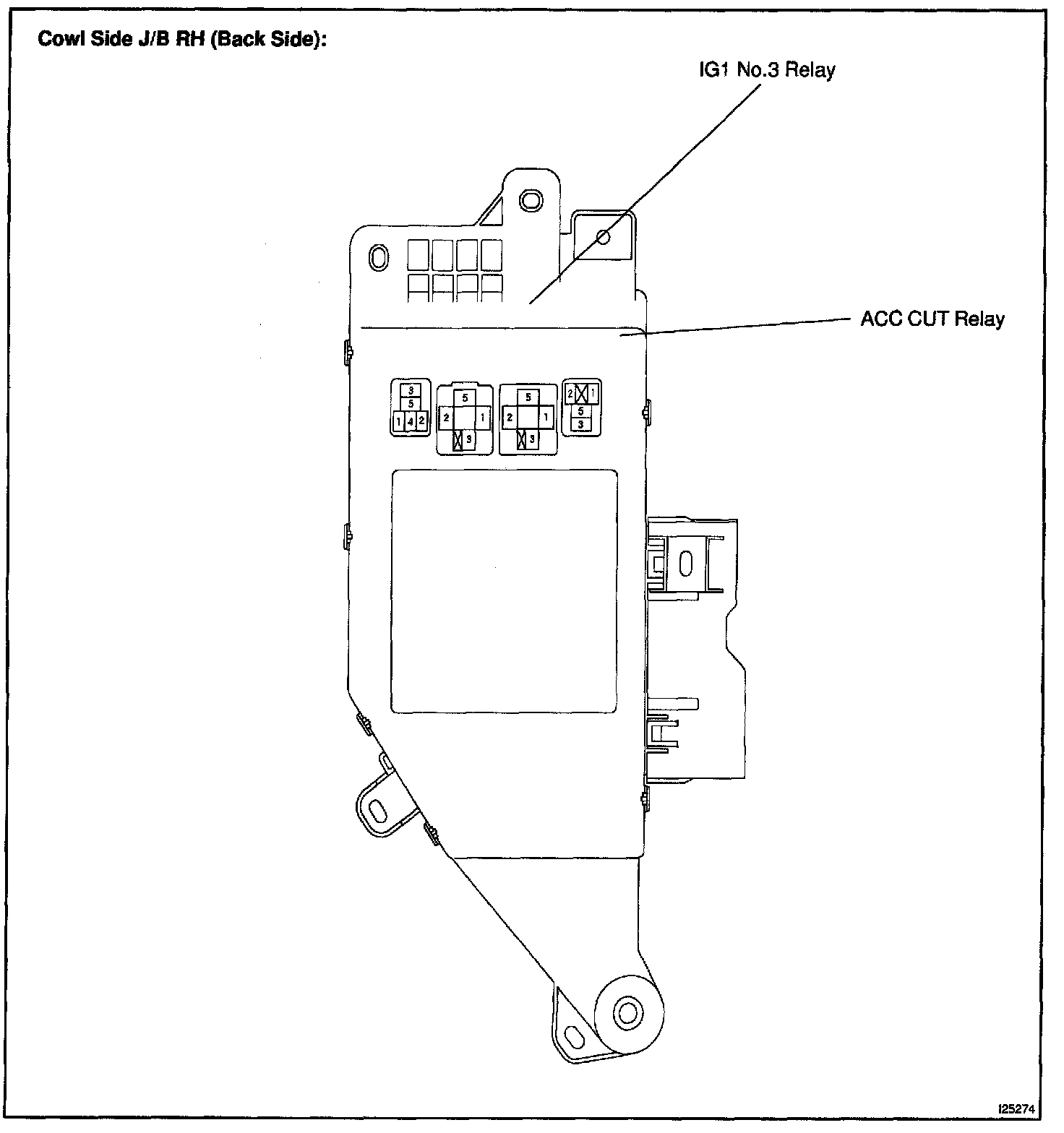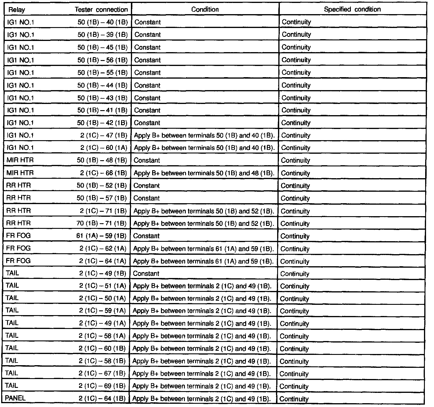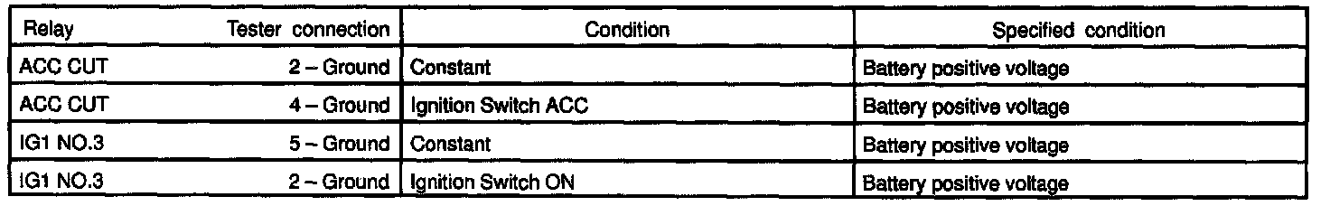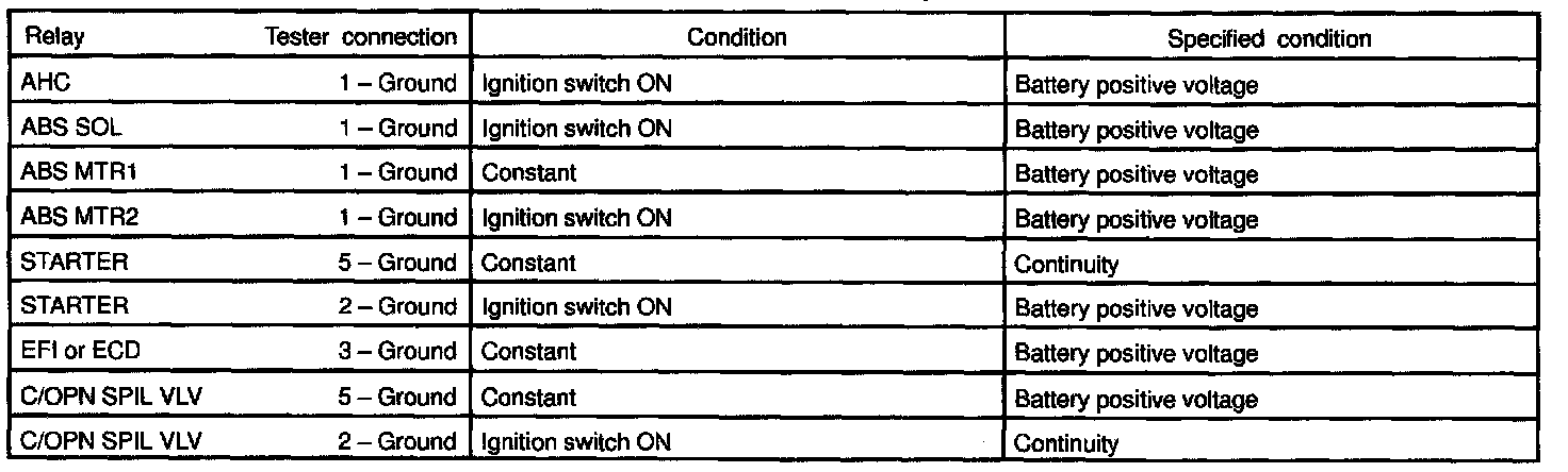 HINT: The relay is built in engine room junction block. Also the relay is constructed with a relay block that is in the junction block as a unit. To disconnect the wire harness connecting with relay block is impossible. If the relay has a malfunction, replace it with junction block assembly wire harness together.