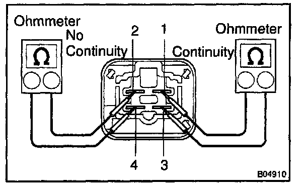 2. Using an ohmmeter, check that there is a continuity between terminal 2 and 4.