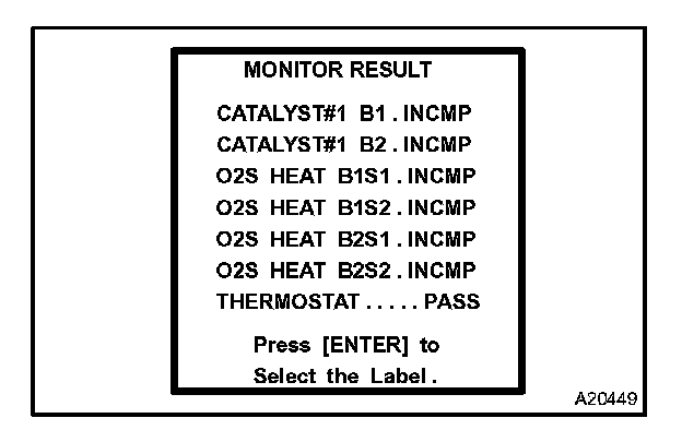 The engine control module (ECM) monitors the emissions-related components as the thermostat, catalyst converter and evaporative emissions (EVAP), and determines whether they are functioning normally or not. When finished monitoring, the ECM stores the monitor results and the test values.