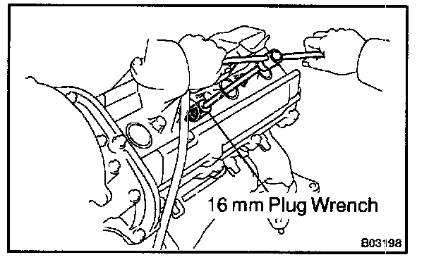 c. Using a 16 mm plug wrench, remove the spark plugs.