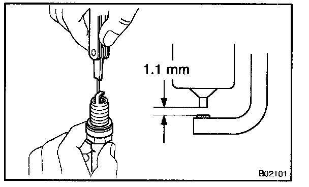 Correct electrode gap for new spark plug: 1.1 mm (0.043 in.)