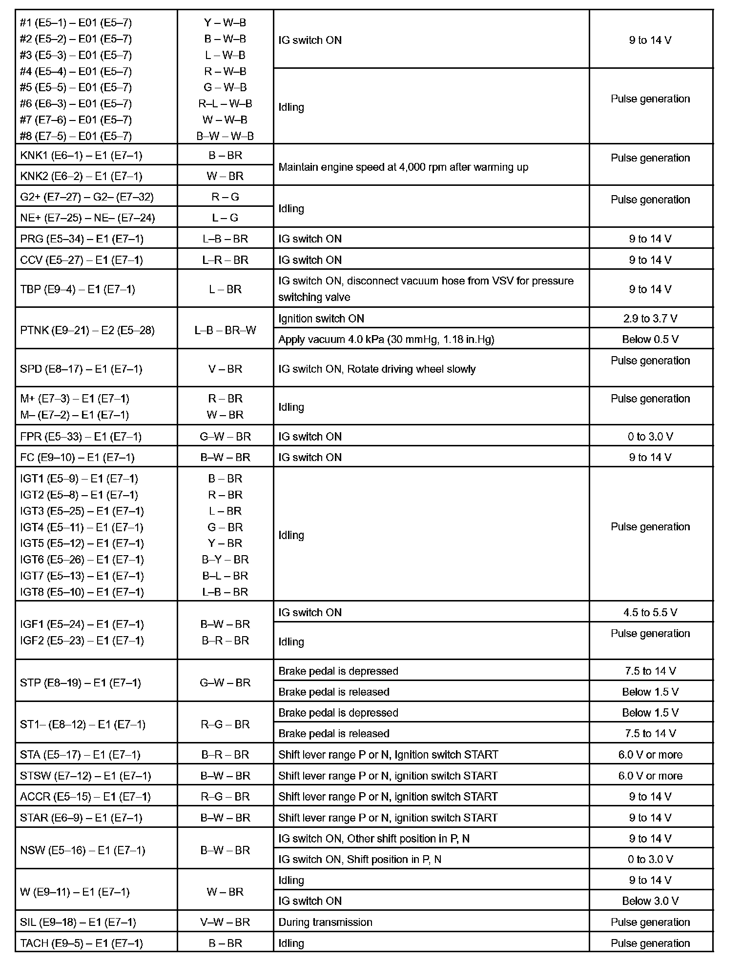 Pinout Values and Diagnostic Parameters