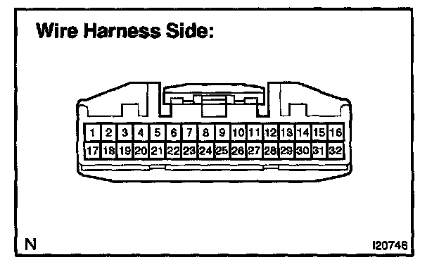 Disconnect the connector from the overhead J/B and inspect the connector on the wire harness side, as shown.