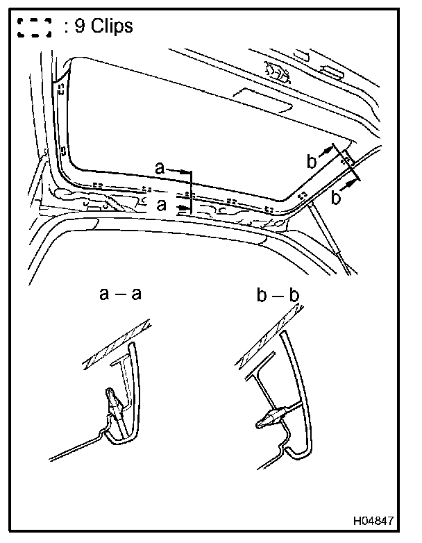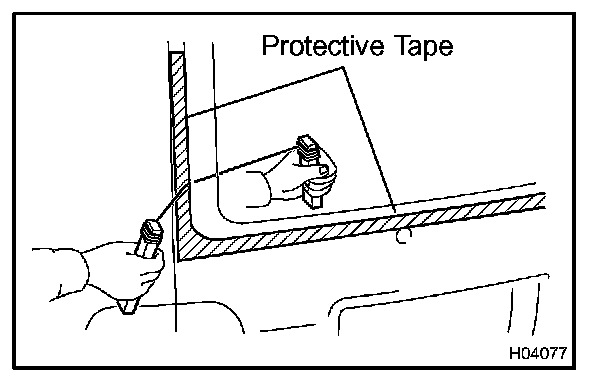 b. Hold back window glass in place securely with protective tape or equivalent until the adhesive hardens.