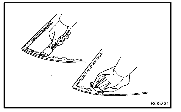 b. Clean the cutting surface of the adhesive with a piece of shop rag saturated in cleaner.