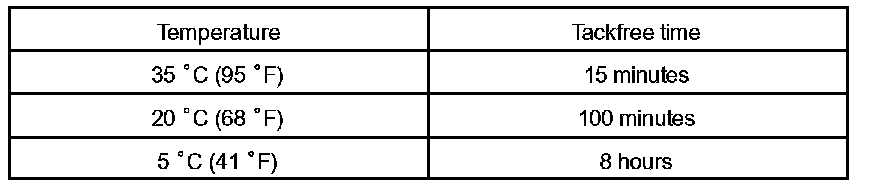 HINT: After cutting off the tip, use all adhesive within the time described in the table.