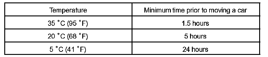 NOTE: Take care not to drive the vehicle during the time described in the table.