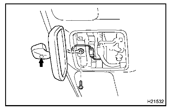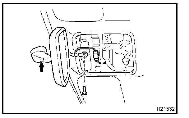b. Unfasten a screw, and remove the other screw and the inner rear view mirror.