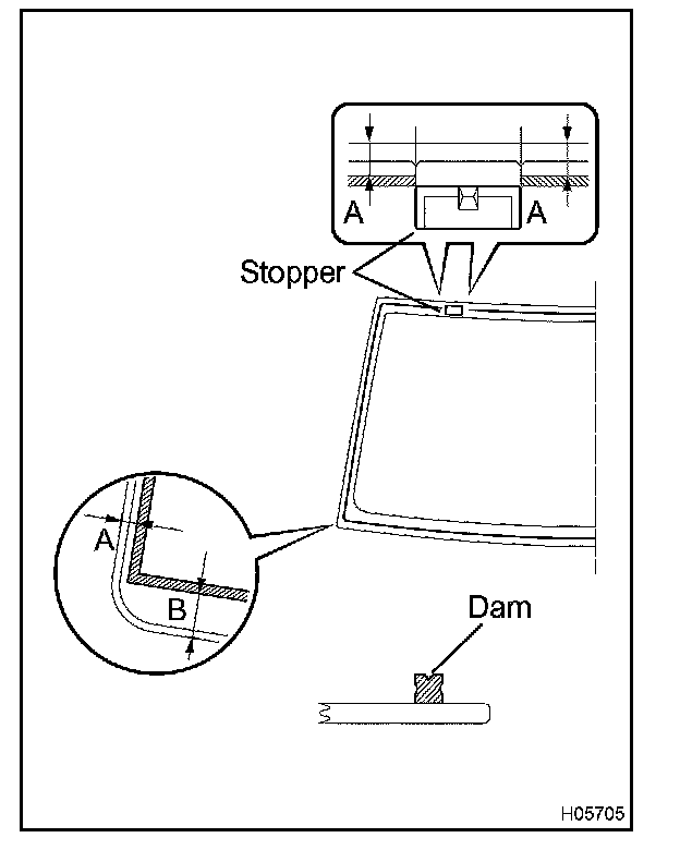 Install new dams with adhesive tape as shown in the illustration.
