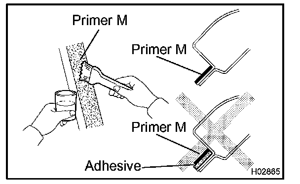 Using a brush, apply Primer M to the exposed part of the body on the vehicle side.