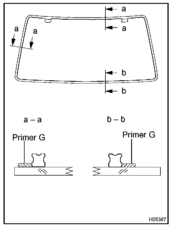 a. Using a brush or sponge, coat the edge of the glass and the contact surface with Primer G.