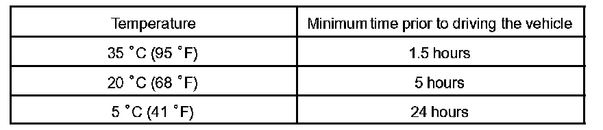 NOTE: Take care not to drive the vehicle within the time described in the table.