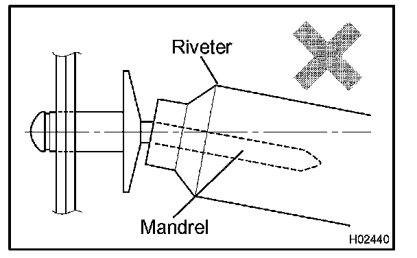 - Do not prize a riveter. It could damage the riveter and cause loose fitting and mandrel bend.