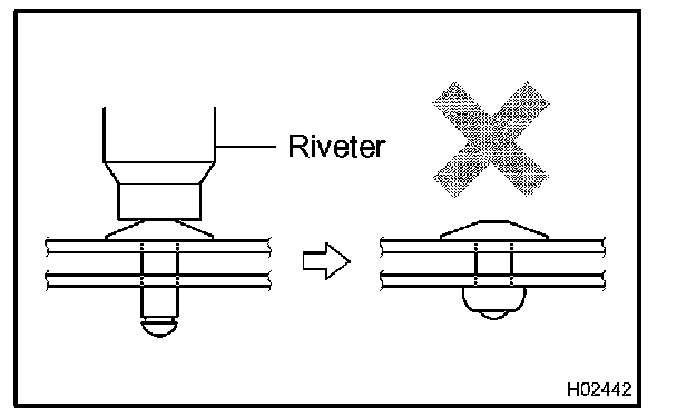 - Do not allow gap spacing between the rivet head and the material.