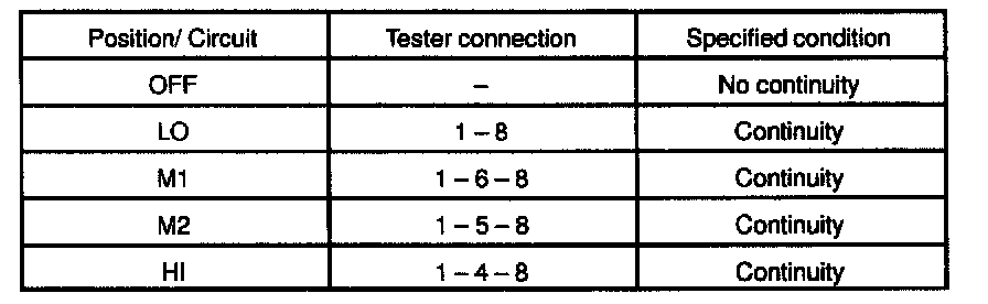 6. INSPECT BLOWER SPEED CONTROL SWITCH CONTINUITY