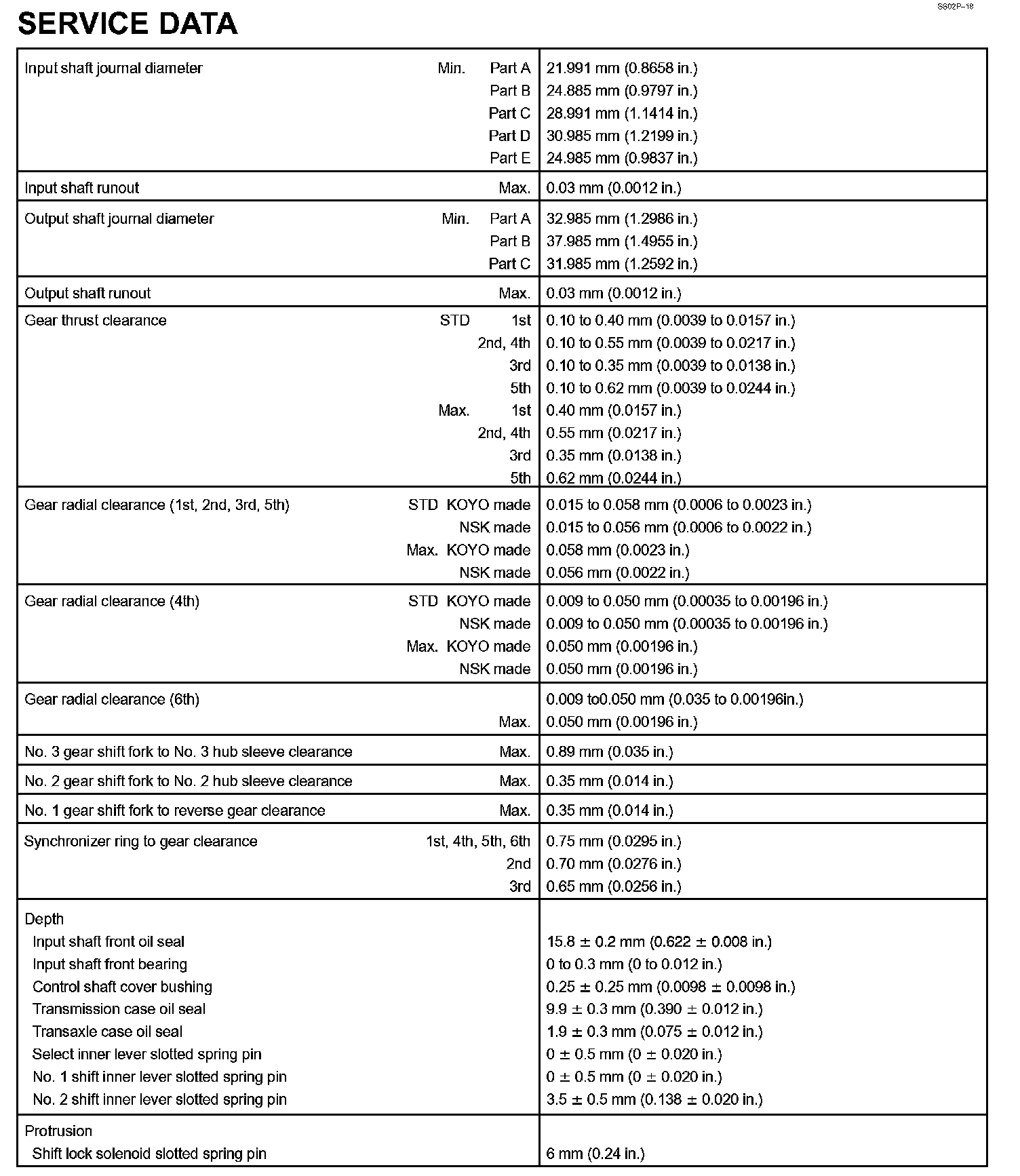 Sequential Manual Transmission - Service Data Part 2: