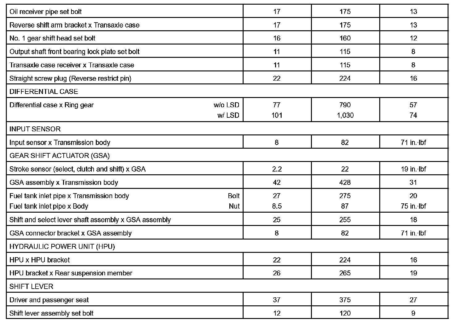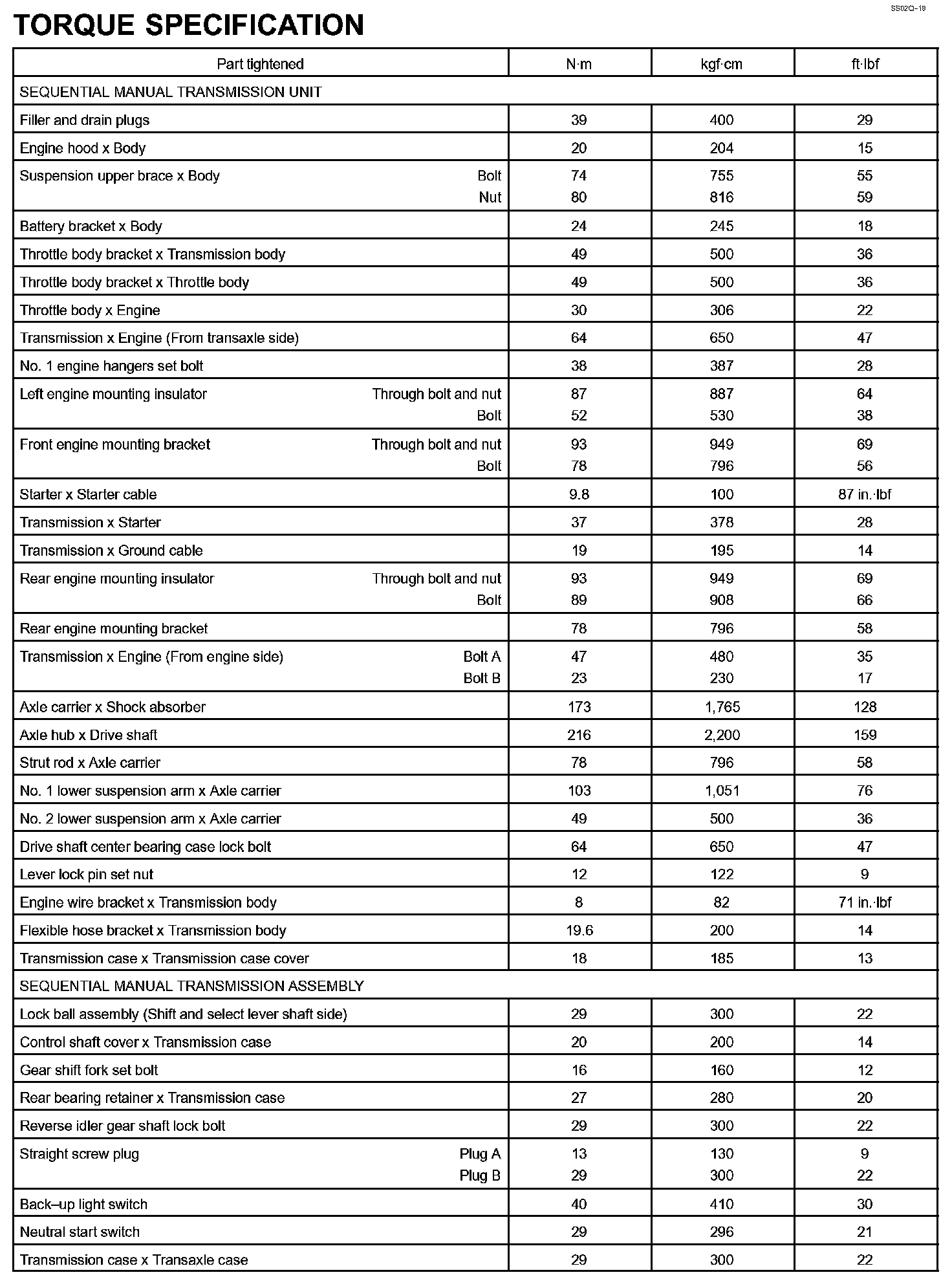 Sequential Manual Transmission - Torque Specification Part 1: